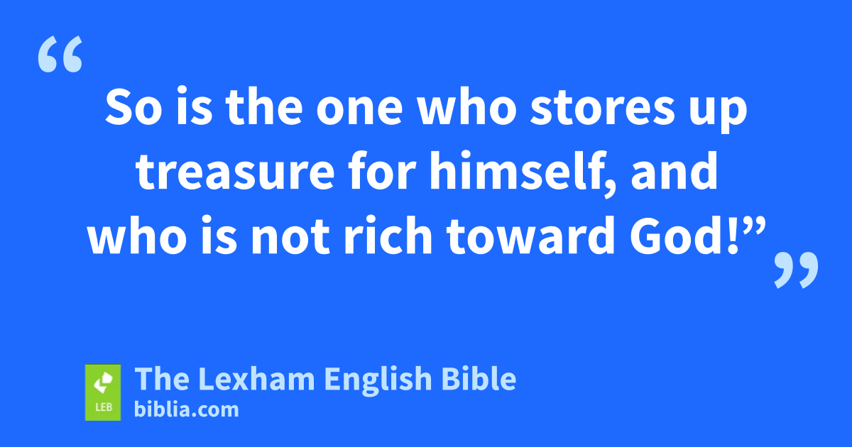 13 Now someone from the crowd said to him, “Teacher, tell my brother to divide the inheritance with me!” 14 But he said to him, “Man, who made me a judge or an arbitrator over you?” 15 And he said to them, “Watch out and guard yourselves from all greediness, because not even when someone has an abundance ⌊does⌋c his life consist of his possessions.” 16 And he told a parable to them, saying, “The land of a certain rich man yielded an abundant harvest. 17 And he reasoned to himself, saying, ‘What should I do? For I do not have anywhere I can gather in my crops.’ 18 And he said, ‘I will do this: I will tear down my barns and build larger ones, and I will gather in there all my grain and possessions. 19 And I will say to my soul, “Soul, you have many possessions stored up for many years. Relax, eat, drink, celebrate!” ’ 20 But God said to him, ‘Fool! This night your lifed is demanded from you, and the things which you have prepared—whose will they be?’ 21 So is the one who stores up treasure for himself, and who is not rich toward God!”