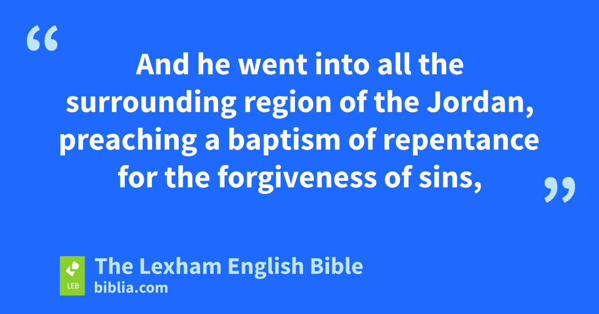 3 Now in the fifteenth year of the reign of Tiberius Caesar,a when Pontius Pilate was governor of Judea, and Herod was tetrarch of Galilee, and his brother Philip was tetrarch of the region of Iturea and Trachonitis, and Lysanias was tetrarch of Abilene, 2 in the time of the high priest Annas and Caiaphas, the word of God came to John the son of Zechariah in the wilderness. 3 And he went into all the surrounding region of the Jordan, preaching a baptism of repentance for the forgiveness of sins, 4 as it is written in the book of the words of the prophet Isaiah,