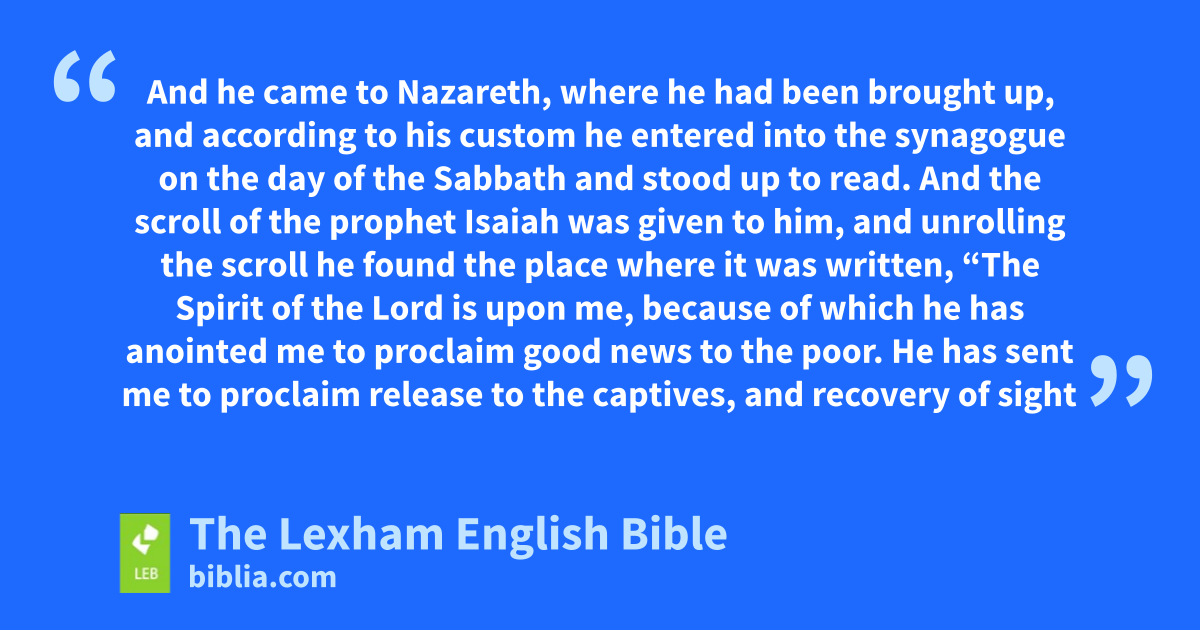 16 And he came to Nazareth, where ⌊he had been brought up⌋,g and according to ⌊his custom⌋h he entered into the synagogue on the day of the Sabbath and stood up to read. 17 And the scroll of the prophet Isaiah was given to him, and unrolling the scroll he found the place where it was written,