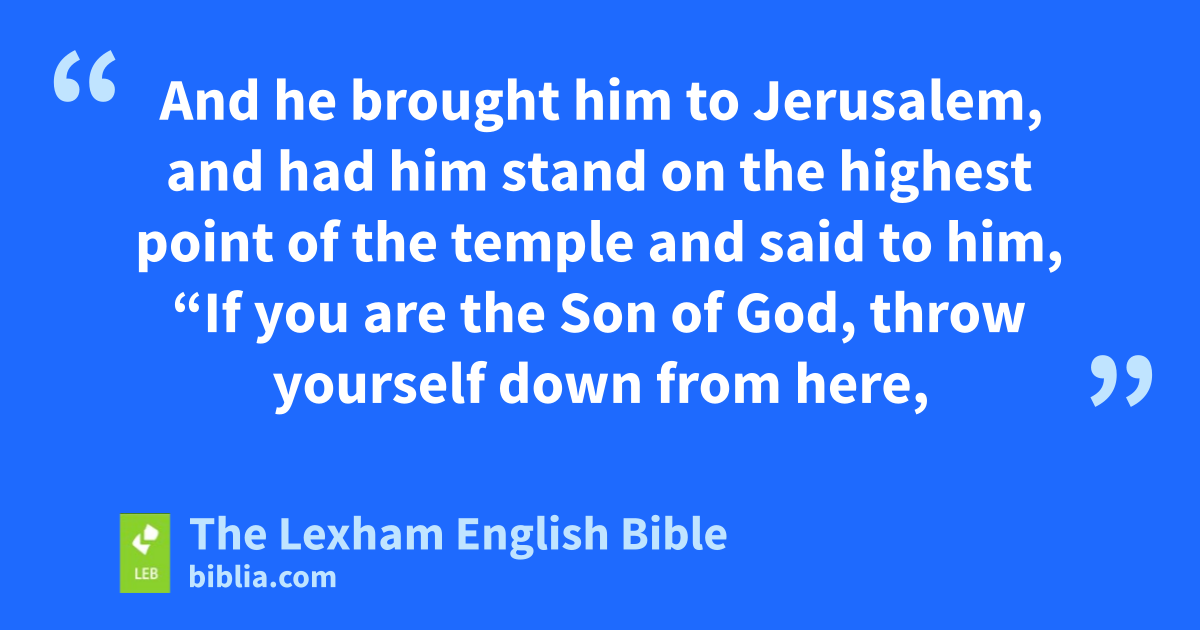 9 And he brought him to Jerusalem, and had him stand on the highest point of the temple and said to him, “If you are the Son of God, throw yourself down from here, 10 for it is written,