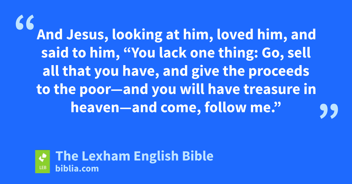 17 And as* he was setting out on his way, one individual ran up and knelt down before him and* asked him, “Good Teacher, what must I do so that I will inherit eternal life?” 18 So Jesus said to him, “Why do you call me good? No one is good except God alone. 19 You know the commandments: ‘Do not murder, do not commit adultery, do not steal, do not give false testimony, do not defraud, honor your father and mother.’ ”j 20 And he said to him, “Teacher, all these I have observed from my youth.” 21 And Jesus, looking at him, loved him, and said to him, “You lack one thing: Go, sell all that you have, and give the proceeds* to the poor—and you will have treasure in heaven—and come, follow me.” 22 But he looked gloomy at the statement and* went away sorrowful, ⌊because he had⌋k many possessions.