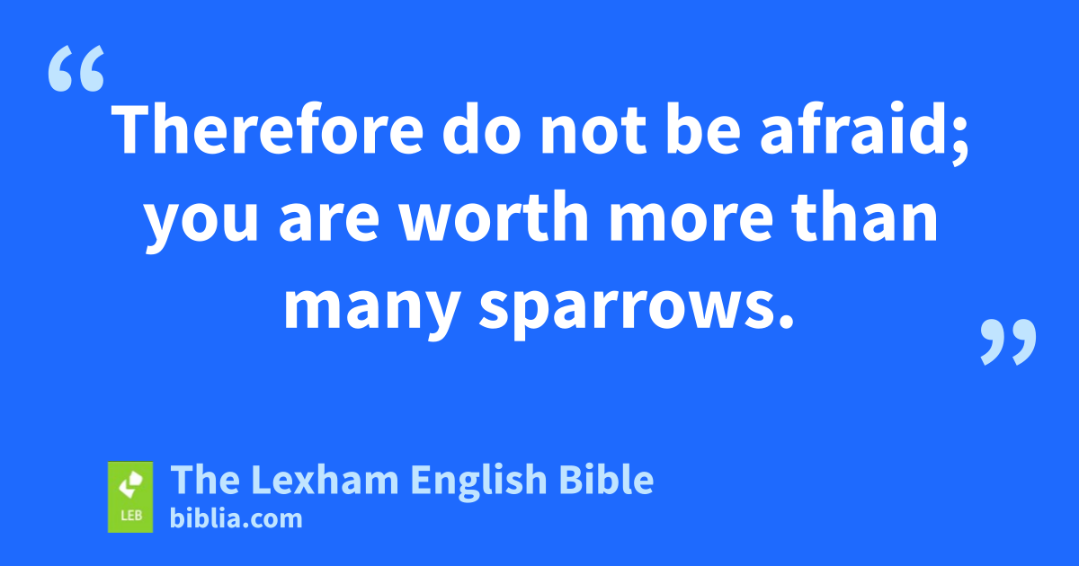 26 “Therefore do not be afraid of them, because nothing is hidden that will not be revealed, and nothing secret that will not become known. 27 What I say to you in the dark, tell in the light, and what you hear in your ear, proclaim on the housetops. 28 And do not be afraid of those who kill the body but are not able to kill the soul, but instead be afraid of the one who is able to destroy both soul and body in hell. 29 Are not two sparrows sold for a penny?f And one of them will not fall to the ground ⌊without the knowledge and consent⌋g of your Father. 30 And even the hairs of your head are all numbered! 31 Therefore do not be afraid; you are worth more than many sparrows.