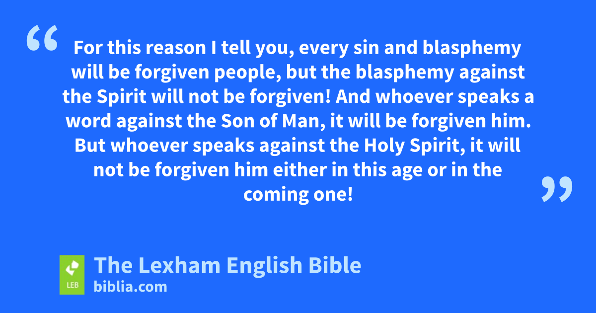 22 Then a demon-possessed man who was blind and mute was brought to him. And he healed him so that the man who was mute could speak and see. 23 And all the crowds were amazed and began saying, “Perhaps this one is the Son of David!” 24 But the Pharisees, when they* heard it,* said, “This man does not expel demons except by Beelzebul the ruler of demons!” 25 But knowing their thoughts, he said to them, “Every kingdom divided against itself is laid waste, and every city or household divided against itself will not stand. 26 And if Satan expels Satan, he is divided against himself. How then will his kingdom stand? 27 And if I expel demons by Beelzebul, by whom do your sons expel them?* For this reason they will be your judges! 28 But if I expel demons by the Spirit of God, then the kingdom of God has come upon you! 29 Or how can someone enter into the house of a strong man and steal his property, unless he first ties up the strong man? And then he can thoroughly plunder his house. 30 The one who is not with me is against me, and the one who does not gather with me scatters. 31 For this reason I tell you, every sin and blasphemy will be forgiven people, but the blasphemy against the Spirit will not be forgiven! 32 And whoever speaks a word against the Son of Man, it will be forgiven him. But whoever speaks against the Holy Spirit, it will not be forgiven him either in this age or in the coming one!