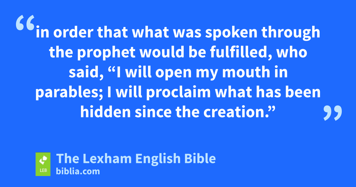 34 Jesus spoke all these things to the crowds in parables, and he was saying nothing to them without a parable, 35 in order that what was spoken through the prophet would be fulfilled, who said,