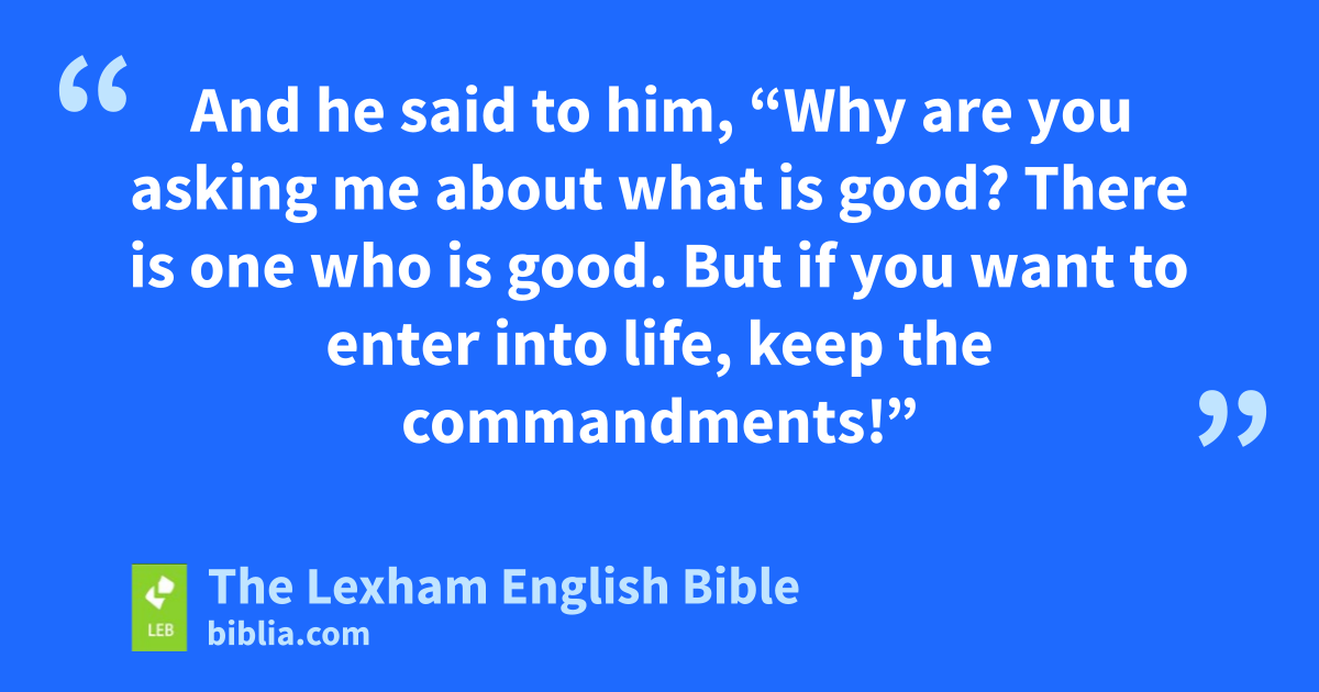 16 And behold, someone came up to him and* said, “Teacher, what good thing must I do so that I will have eternal life?” 17 And he said to him, “Why are you asking me about what is good? There is one who is good. But if you want to enter into life, keep the commandments!” 18 He said to him, “Which ones?” And Jesus said, “Do not commit murder, do not commit adultery, do not steal, do not give false testimony, 19 honor your* father and your* mother, and love your neighbor as yourself.” 20 The young man said to him, “All these I have observed. What do I still lack?” 21 Jesus said to him, “If you want to be perfect, go, sell your possessions and give the proceeds* to the poor—and you will have treasure in heaven—and come, follow me.” 22 But when* the young man heard the statement, he went away sorrowful, because he was one who had many possessions.