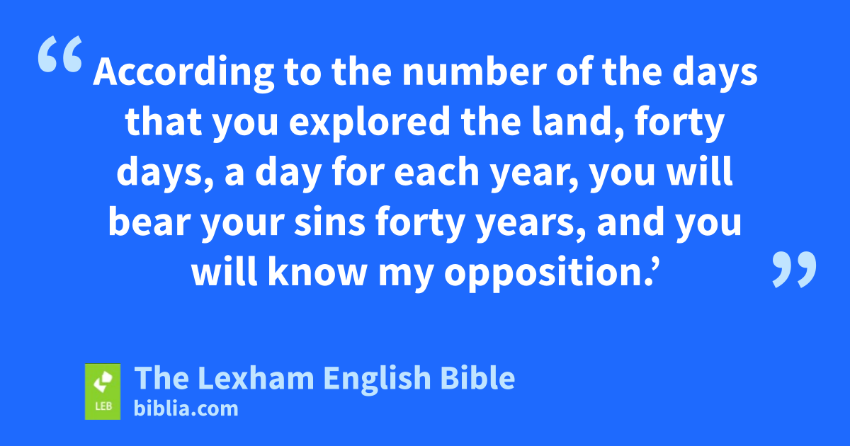 26 And Yahweh spoke to Moses and Aaron, saying, 27 “How long will I bear this evil community who are grumbling against me? I have heard the grumbling of the ⌊Israelites⌋w which ⌊they are making⌋x against me. 28 Say to them, ‘Surely as I live,’ ⌊declares⌋y Yahweh, ‘just as you spoke ⌊in my hearing⌋,z so I will do to you; 29 in this desert your corpses will fall, and all your counted ones, according to all your number, from ⌊twenty years old⌋a and above who grumbled against me. 30 You yourselves will not come into the land that ⌊I swore by oath⌋b to make you to dwell in it, but Caleb son of Jephunneh and Joshua son of Nun. 31 But your little children, whom you said would be plunder, I will bring them, and they will know the land that you rejected. 32 But for you, all your corpses will fall in this desert. 33 And your children will be shepherds in the desert forty years,c and you will bear your unfaithfulness until ⌊all your corpses have fallen⌋d in the desert. 34 According to the number of the dayse that you explored the land, forty days,f ⌊a day for each year⌋,g you will bear your sins forty years,h and you will know my opposition.’ 35 I, Yahweh, have spoken; I will surely do this to all this evil community who has banded together against me. In this desert they will come to an end, and there they will die.”