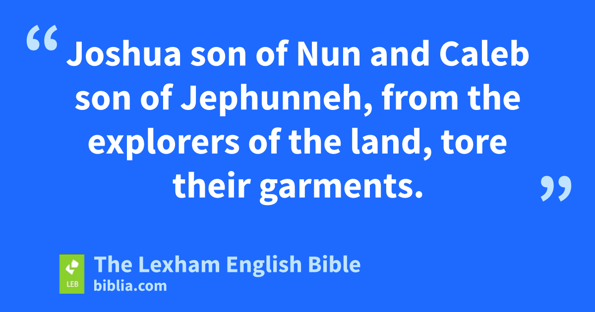5 Then Moses and Aaron fell on their faces ⌊before⌋d the assembly of the community of the ⌊Israelites⌋.e 6 Joshua son of Nun and Caleb son of Jephunneh, from the explorers of the land, tore their garments. 7 And they said to all the community of the ⌊Israelites⌋,f “The land that we went through to explore is an ⌊exceptionally good land⌋.g 8 If Yahweh delights in us, then he will bring us into this land, and he will give it to us, a land that is flowing with milk and honey. 9 Only do not rebel against Yahweh, and you will not fear the people of the land, because they will be our food. ⌊Their protection⌋h has been turned from them; Yahweh is with us. You should not fear them.” 10 And all the community said to stone them with stones, but the glory of Yahweh appeared in the tent of assembly among the ⌊Israelites⌋.i