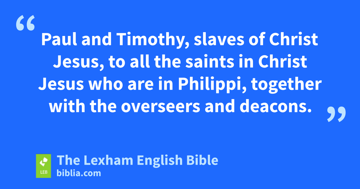 1 Paul and Timothy, slaves of Christ Jesus, to all the saints in Christ Jesus who are in Philippi, together with the overseers and deacons. 2 Grace to you and peace from God our Father and the Lord Jesus Christ.