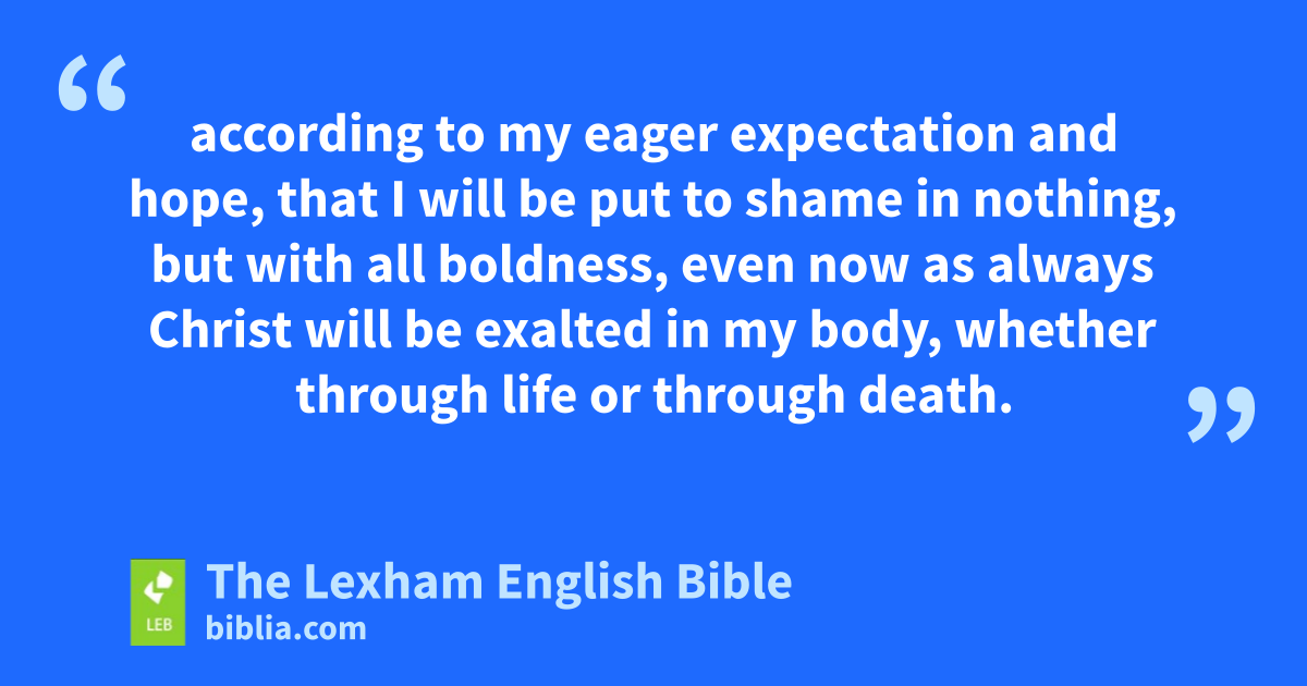 12 Now I want you to know, brothers, that ⌊my circumstances⌋c have happened instead for the progress of the gospel, 13 so that my imprisonment in Christ has become known in the whole praetoriumd and to all the rest, 14 and most of the brothers, trusting in the Lord because of my imprisonment, dare even more to speak the word without fear. 15 Some even because of envy and strife preach Christ, but some also because of good will. 16 The latter do so from love, knowing that I am appointed for the defense of the gospel. 17 The former proclaim Christ from selfish ambition, not sincerely, thinking to raise up affliction in my imprisonment. 18 ⌊What is the result?⌋e Only that in every way, whether in pretense or in truth, Christ is proclaimed, and in this I rejoice. But also I will rejoice, 19 for I know that this will turn out to me for deliverance through your prayer and the support of the Spirit of Jesus Christ, 20 according to my eager expectation and hope, that I will be put to shame in nothing, but with all boldness, even now as always Christ will be exalted in my body, whether through life or through death. 21 For to me to live is Christ and to die is gain. 22 But if it is to live in the flesh, this is fruitful work for me, and which I will prefer I do not know. 23 But I am hard pressed ⌊between the two options⌋f, having the desire to depart and to be with Christ, ⌊for this is very much better⌋g. 24 But to stay on in the flesh is more necessary for your sake. 25 And because I am* convinced of this, I know that I will remain and continue with all of you for your progress and joy in the faith, 26 so that what you can be proud of may increase in Christ Jesus because of me through my return again to you.