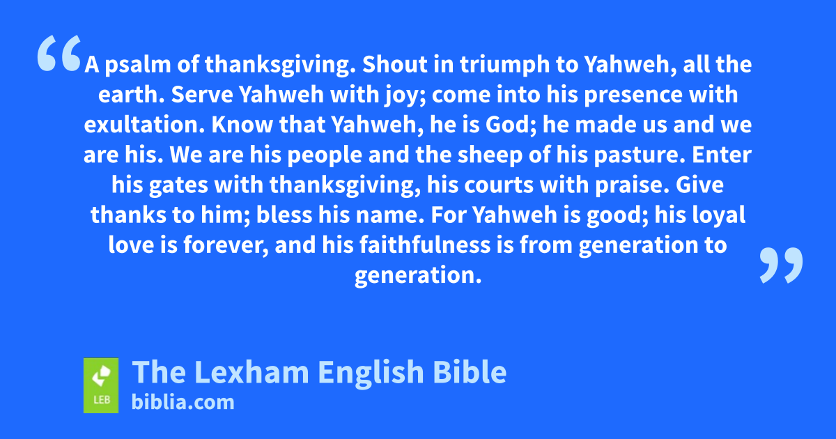 100 A psalm of thanksgiving.a