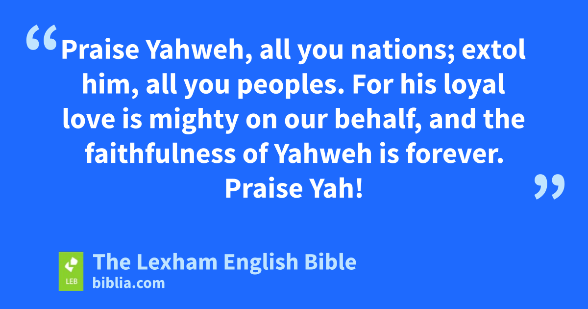 117 Praise Yahweh, all you nations;