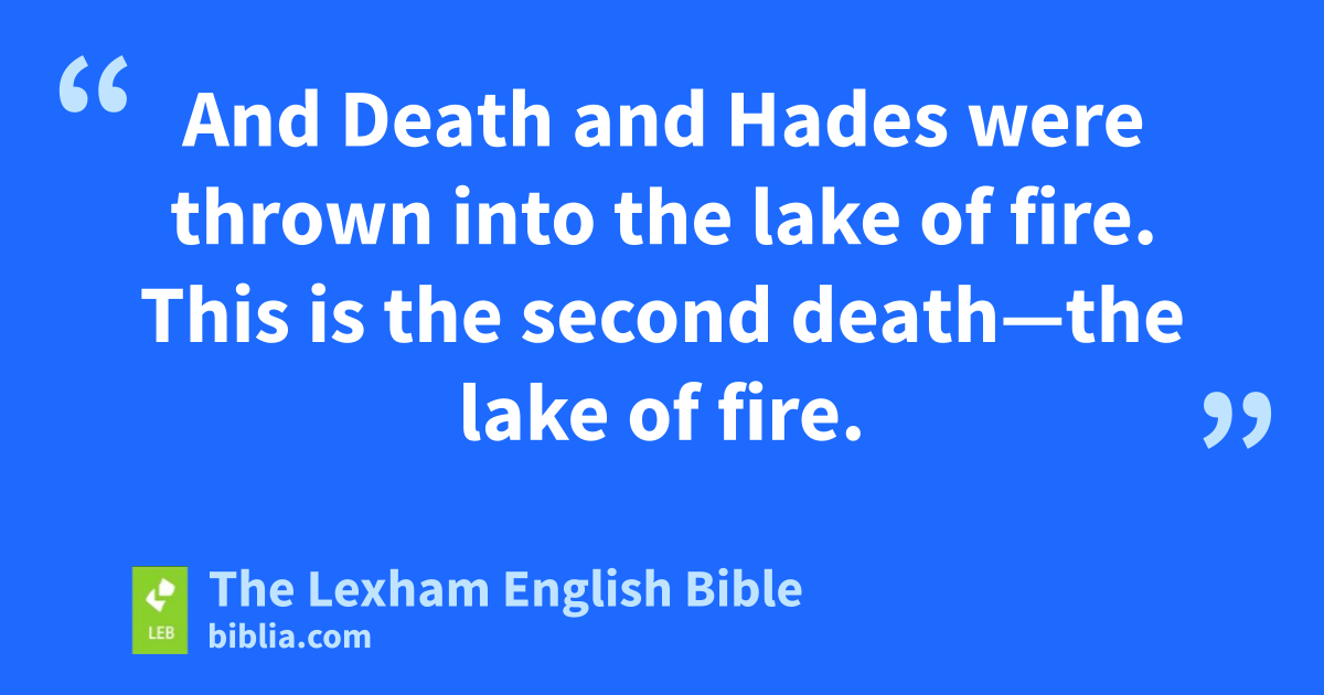 11 And I saw a great white throne and the one who was seated on it, ⌊from whose presence⌋d earth and heaven fled, and a place was not found for them. 12 And I saw the dead—the great and the small—standing before the throne, and books were opened. And another book was opened, which is the book of life, and the dead were judged by what was written in the books, according to their deeds. 13 And the sea gave up the dead who were in it, and Death and Hades gave up the dead who were in them, and each one was judged according to their deeds. 14 And Death and Hades were thrown into the lake of fire. This is the second death—the lake of fire. 15 And if anyone was not found written in the book of life, he was thrown into the lake of fire.