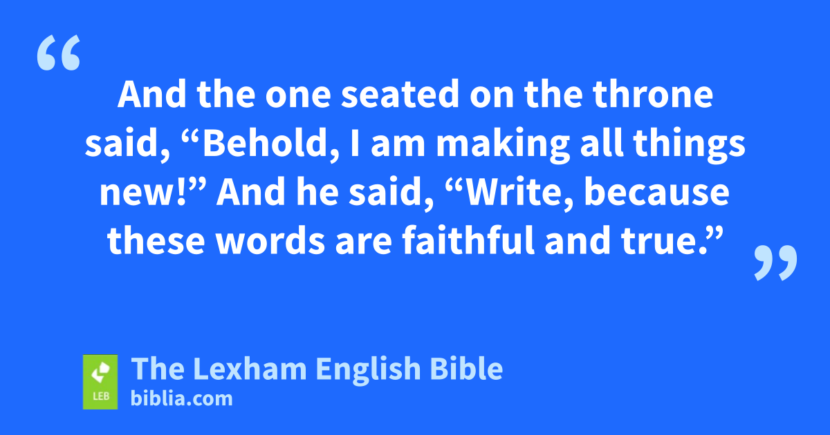 5 And the one seated on the throne said, “Behold, I am making all things new!” And he said, “Write, because these words are faithful and true.” 6 And he said to me, “It is done! I amd the Alpha and the Omega, the beginning and the end. To the one who is thirsty I will give water from the spring of the water of life freely.e 7 The one who conquers will inherit these things, and I will be ⌊his God⌋f and he will be ⌊my son⌋g. 8 But as for the cowards and unbelievers and detestable persons and murderers and sexually immoral people and sorcerers and idolaters and all liars, their share is in the lake that burns with fire and sulphur, which is the second death.