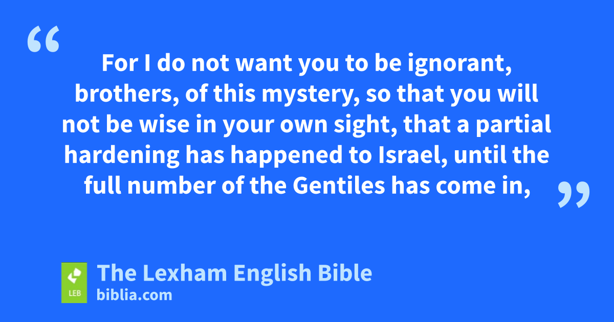 25 For I do not want you to be ignorant, brothers, of this mystery, so that you will not be wise ⌊in your own sight⌋,k that a partial hardening has happened to Israel, until the full number of the Gentiles has come in, 26 and so all Israel will be saved, just as it is written,