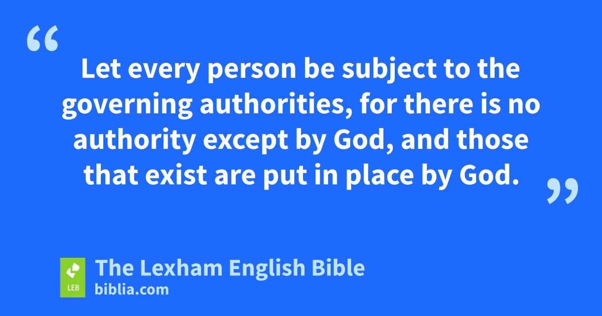 13 Let every person be subject to the governing authorities, for there is no authority except by God, and those that exist are put in place by God. 2 So then, the one who resists authority resists the ordinance which is from God, and those who resist will receive condemnation on themselves. 3 For rulers are not a cause of terror for a good deed, but for bad conduct. So do you want not to be afraid of authority? Do what is good, and you will have praise from it, 4 for it is God’s servant to you for what is good. But if you do what is bad, be afraid, because it does not bear the sword to no purpose. For it is God’s servant, the one who avenges for punishment on the one who does what is bad. 5 Therefore it is necessary to be in subjection, not only because of wrath but also because of conscience. 6 For because of this you also pay taxes, for the authoritiesa are servants of God, busily engaged in this very thing. 7 Pay to everyone what is owed: pay taxes to whom taxes are due; pay customs duties to whom customs duties are due; pay respect to whom respect is due; pay honor to whom honor is due.b
