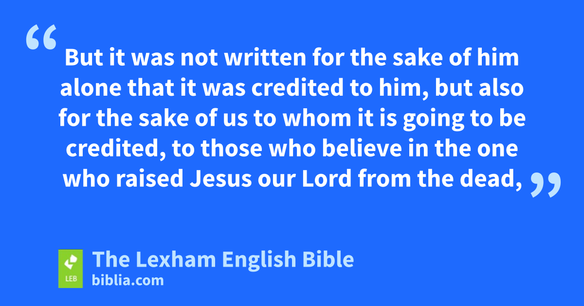 13 For the promise to Abraham or to his descendants, that he would be heir of the world, was not through the law, but through the righteousness by faith. 14 For if those of the law are heirs, faith is rendered void and the promise is nullified. 15 For the law produces wrath, but where there is no law, neither is there transgression. 16 Because of this, it is by faith, in order that it may be according to grace, so that the promise may be secure to all the descendants, not only to those of the law, but also to those of the faith of Abraham, who is the father of us all 17 (just as it is written, “I have made you the father of many nations”)p before God, in whom he believed, the one who makes the dead alive and who calls the things that are not as though they are, 18 who against hope believed in hope, so that he became the father of many nations, according to what was said, “so will your descendants be.”q 19 And not being weak in faith, he considered his own body as good as dead, r because he* was approximately a hundred years old, and the deadness of Sarah’s womb. 20 And he did not waver in unbelief at the promise of God, but was strengthened in faith, giving glory to God 21 and being fully convinced that what he had promised, he was also able to do. 22 Therefores it was credited to him for righteousness. 23 But it was not written for the sake of him alone that it was credited to him, 24 but also for the sake of us to whom it is going to be credited, to those who believe in the one who raised Jesus our Lord from the dead, 25 who was handed over on account of our trespasses, and was raised up in the interest of our justification.t