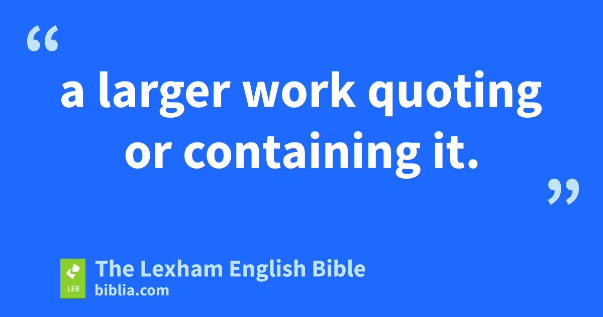 Lexham is a registered trademark of Logos Bible Software. You may use LEB or Lexham English Bible to refer to the Lexham English Bible, but may not use the Lexham trademark as any part of the name of a larger work quoting or containing it.