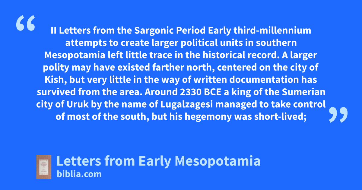 This volume provides a selection of letters from ancient Western Asia up to the time of the First Dynasty of Isin. These letters were written on clay tablets with the cuneiform script; they are the earliest epistolary writings known to us from any part of the globe. The texts are translated from three languages—Sumerian, Eblaite, and Old Akkadian—all of which are imperfectly understood at...