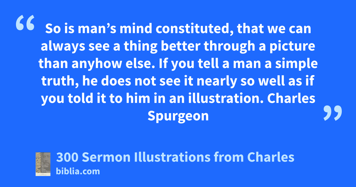 So is man’s mind constituted, that we can always see a thing better through a picture than anyhow else. If you tell a man a simple truth, he does not see it nearly so well as if you told it to him in an illustration. Charles Spurgeon