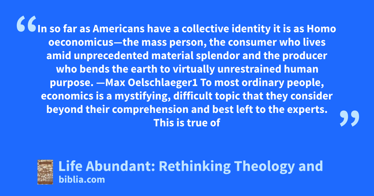 In so far as Americans have a collective identity it is as Homo oeconomicus—the mass person, the consumer who lives amid unprecedented material splendor and the producer who bends the earth to virtually unrestrained human purpose. —Max Oelschlaeger1 To most ordinary people, economics is a mystifying, difficult topic that they consider beyond their comprehension and best left to the experts. This is true of