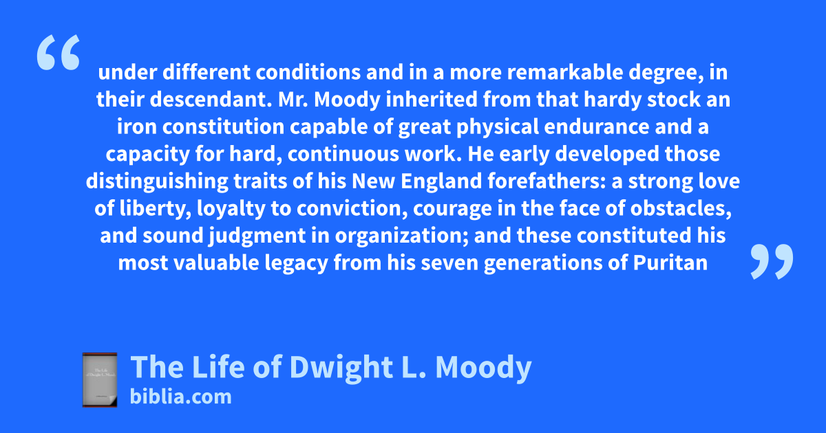 The Life of Dwight L. Moody was written by his son, William R. Moody, in accordance with the request made by his father shortly before he died. Although William was without extensive literary experience, he undertook the preparation of this biography with the purpose of correcting inaccuracies and misstatements that were being published in other “unauthorized” biographies. The lack of experience...