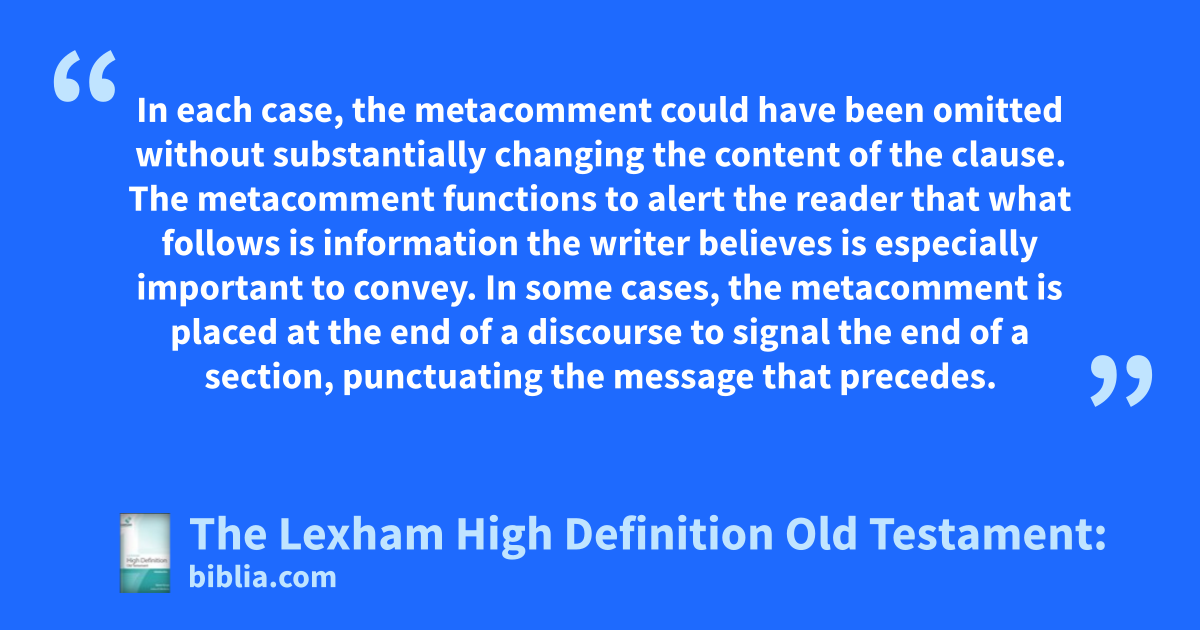 This resource introduces the concepts behind the annotations of The Lexham High Definition Old Testament. Each discourse device is discussed, with several examples, to show the exegetical significance of the device in question.