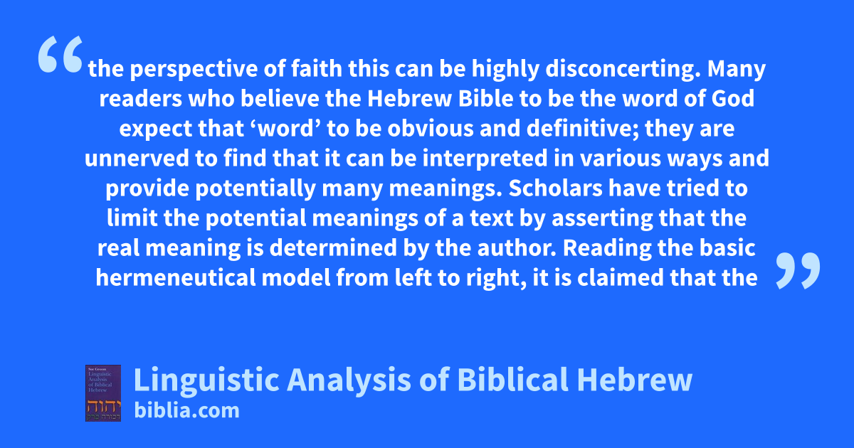 Many linguistic tools and methods are applied to biblical texts in order to gain meaning from them. Such applications do not always take into account the perspective of the investigators, the presuppositions of the methods used and the nature of the material to which it is applied. These are all factors that influence the meaning obtained from the text. Linguistic Analysis of Biblical Hebrew...