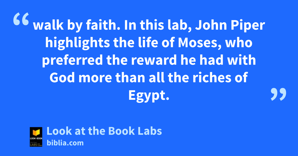 walk by faith. In this lab, John Piper highlights the life of Moses, who preferred the reward he had with God more than all the riches of Egypt.
