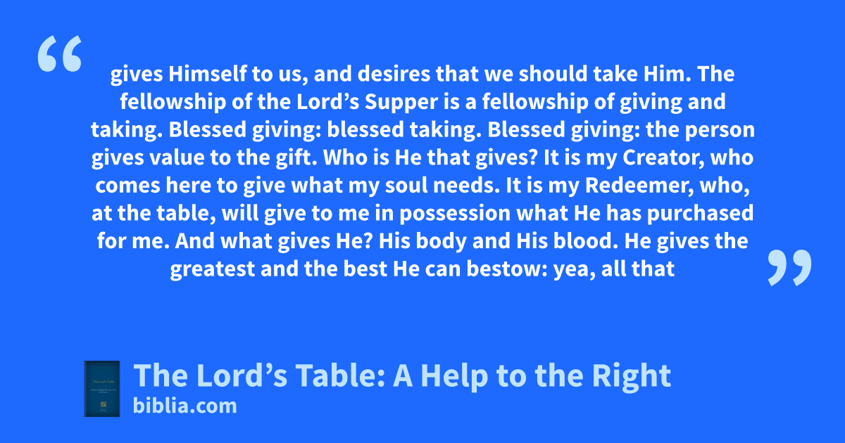 In The Lord’s Table: A Help to the Right Observance of the Holy Supper, Andrew Murray sets forth the purely biblical doctrine of the Supper and, by example, as well as precept, stirs the heart to self-examination, praise, and prayer. He divides this study of communion into three parts: • The Week before the Sabbath. • The Communion Sabbath. • The Week after the Supper.