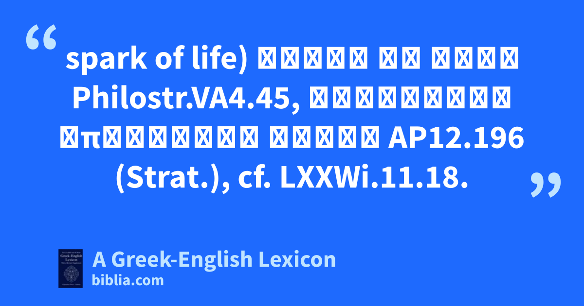 spark of life) εὗρεν ἐν αὐτῇ Philostr.VA4.45, ἀφθαλμοὺς σπινθῆρας ἔχεις AP12.196 (Strat.), cf. LXXWi.11.18.
