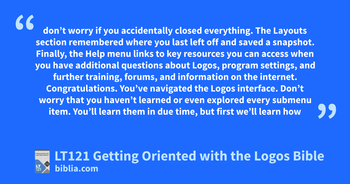 Getting Oriented with Logos Bible Software (LT121) quickly helps a new Logos user confidently use the Logos Bible Software package for powerful Bible study. It focuses on an overview of the Logos interface starting with the Home Page and teaches how to start using Logos for devotional and passage study, including the use of Layouts. This introductory course covers the basic knowledge you’ll need...