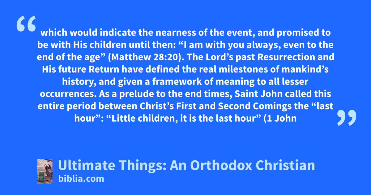 Every generation has had Christians who profess that the end is near. Some Christian groups believe Scripture indicates the end is near. In Ultimate Things, Dennis Engleman provides a thoroughly Orthodox Christian perspective on the end times. This text refuses to sensationalize these times or rewrite traditional Christian teachings to fit with the spirit of our age.