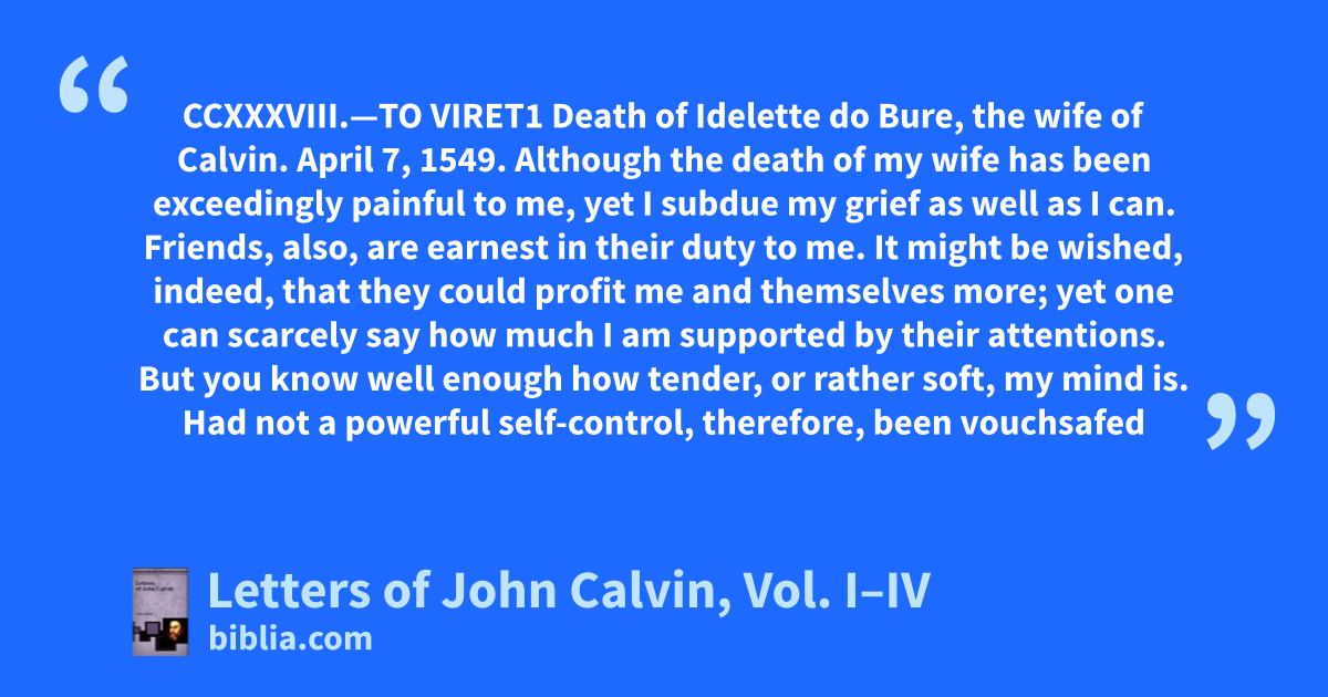 The Letters of John Calvin (4 Vols.) contains four volumes of Calvin’s correspondence. This collection includes over 600 letters written between 1528 and 1564. His first letters were written as he studied in Paris; the last letter was written from his deathbed. In between, we find letters to other Reformers such as Martin Luther and John Knox, as well as letters to kings and government...