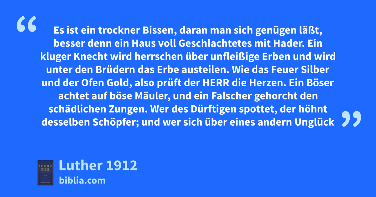 1. Es ist ein trockner Bissen, daran man sich genügen läßt, besser denn ein Haus voll Geschlachtetes mit Hader.