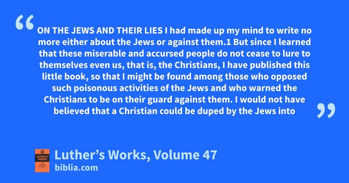 ON THE JEWS AND THEIR LIES I had made up my mind to write no more either about the Jews or against them.1 But since I learned that these miserable and accursed people do not cease to lure to themselves even us, that is, the Christians, I have published this little book, so that I might be found among those who opposed such poisonous activities of the Jews and who warned the Christians to be on their guard against them. I would not have believed that a Christian could be duped by the Jews into