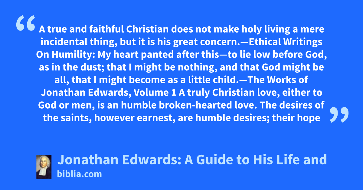 A true and faithful Christian does not make holy living a mere incidental thing, but it is his great concern.—Ethical Writings On Humility: My heart panted after this—to lie low before God, as in the dust; that I might be nothing, and that God might be all, that I might become as a little child.—The Works of Jonathan Edwards, Volume 1 A truly Christian love, either to God or men, is an humble broken-hearted love. The desires of the saints, however earnest, are humble desires; their hope