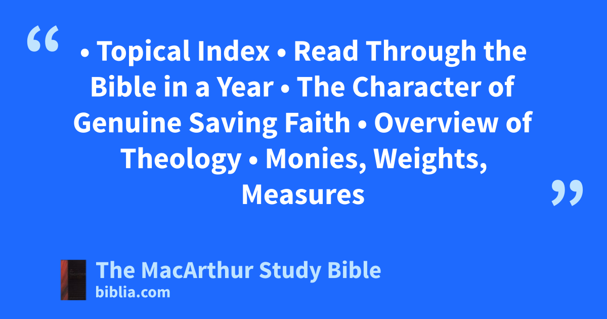 • Topical Index • Read Through the Bible in a Year • The Character of Genuine Saving Faith • Overview of Theology • Monies, Weights, Measures