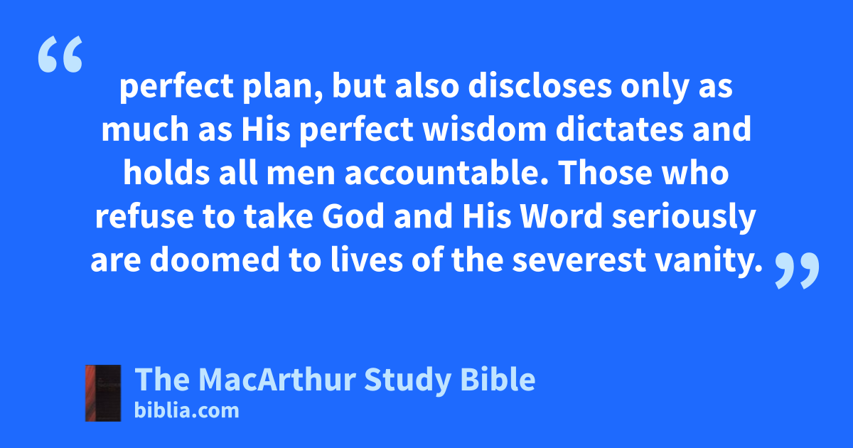perfect plan, but also discloses only as much as His perfect wisdom dictates and holds all men accountable. Those who refuse to take God and His Word seriously are doomed to lives of the severest vanity.