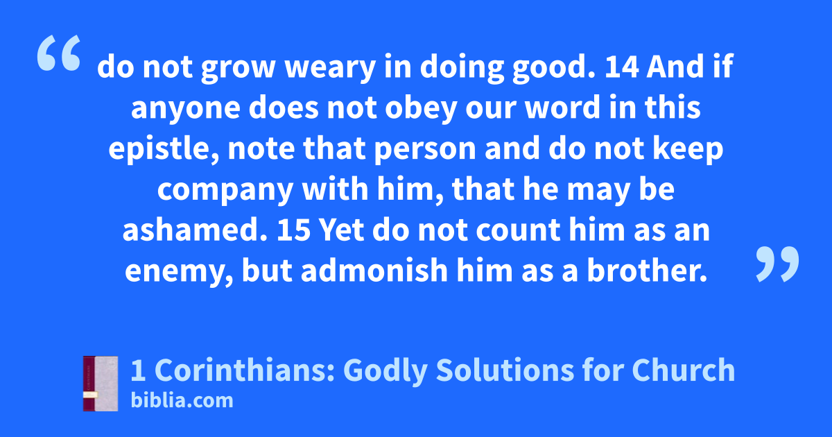 do not grow weary in doing good. 14 And if anyone does not obey our word in this epistle, note that person and do not keep company with him, that he may be ashamed. 15 Yet do not count him as an enemy, but admonish him as a brother.