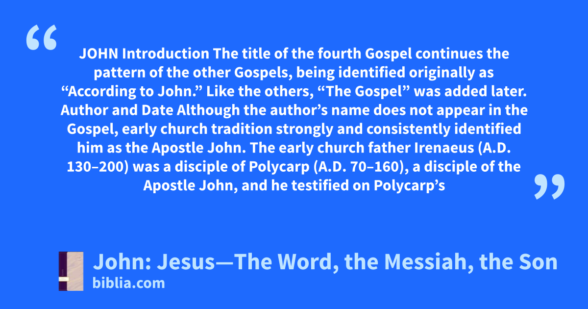 The gospel of John focuses on Jesus as the World, the Messiah, and the Son of God, who brings the gift of salvation to people. As Christians, we too need to focus on Jesus, who offers us salvation by grace through our faith in him, John's book will help us do that.