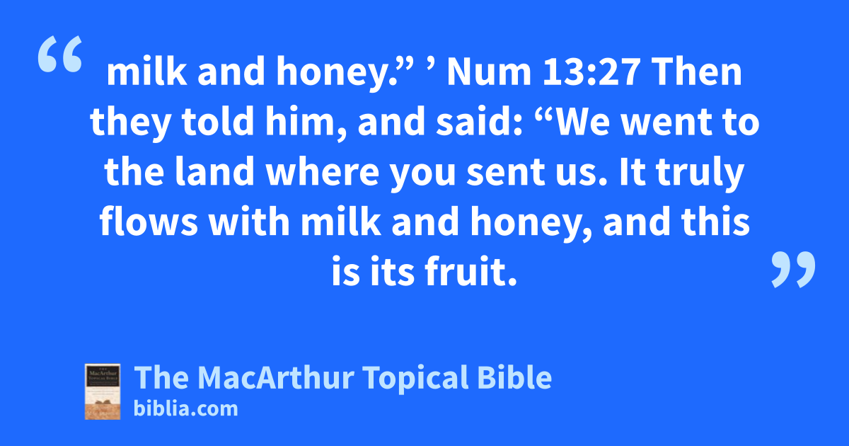 milk and honey.” ’ Num 13:27 Then they told him, and said: “We went to the land where you sent us. It truly flows with milk and honey, and this is its fruit.