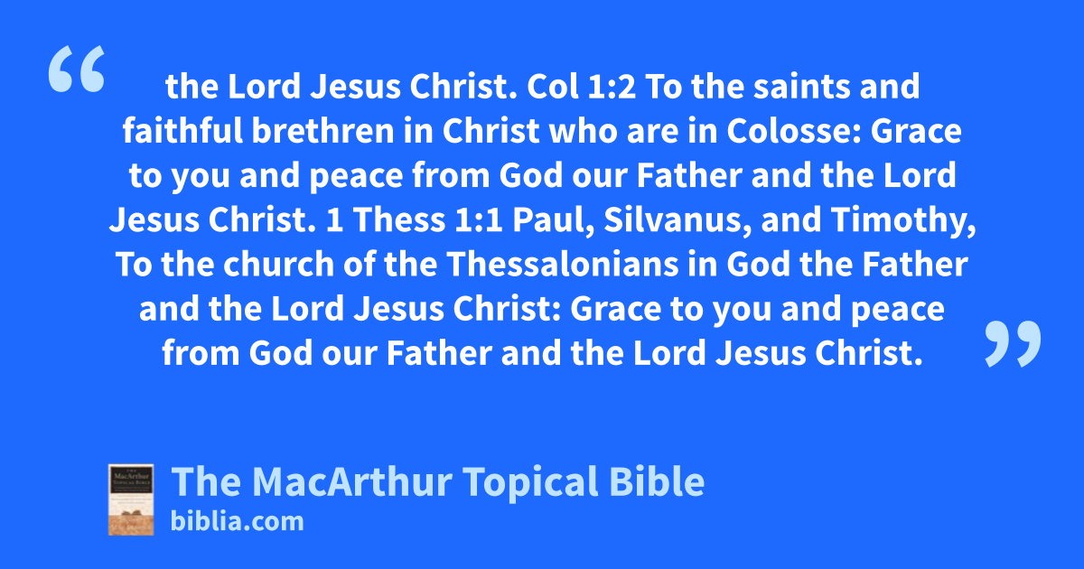 the Lord Jesus Christ. Col 1:2 To the saints and faithful brethren in Christ who are in Colosse: Grace to you and peace from God our Father and the Lord Jesus Christ. 1 Thess 1:1 Paul, Silvanus, and Timothy, To the church of the Thessalonians in God the Father and the Lord Jesus Christ: Grace to you and peace from God our Father and the Lord Jesus Christ.