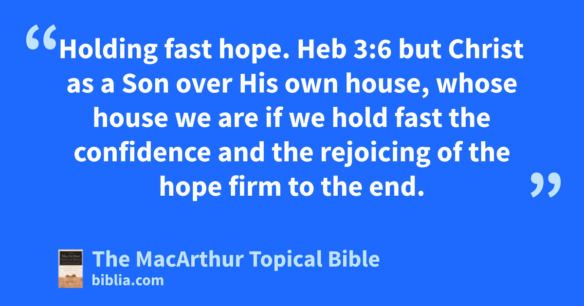 Holding fast hope. Heb 3:6 but Christ as a Son over His own house, whose house we are if we hold fast the confidence and the rejoicing of the hope firm to the end.