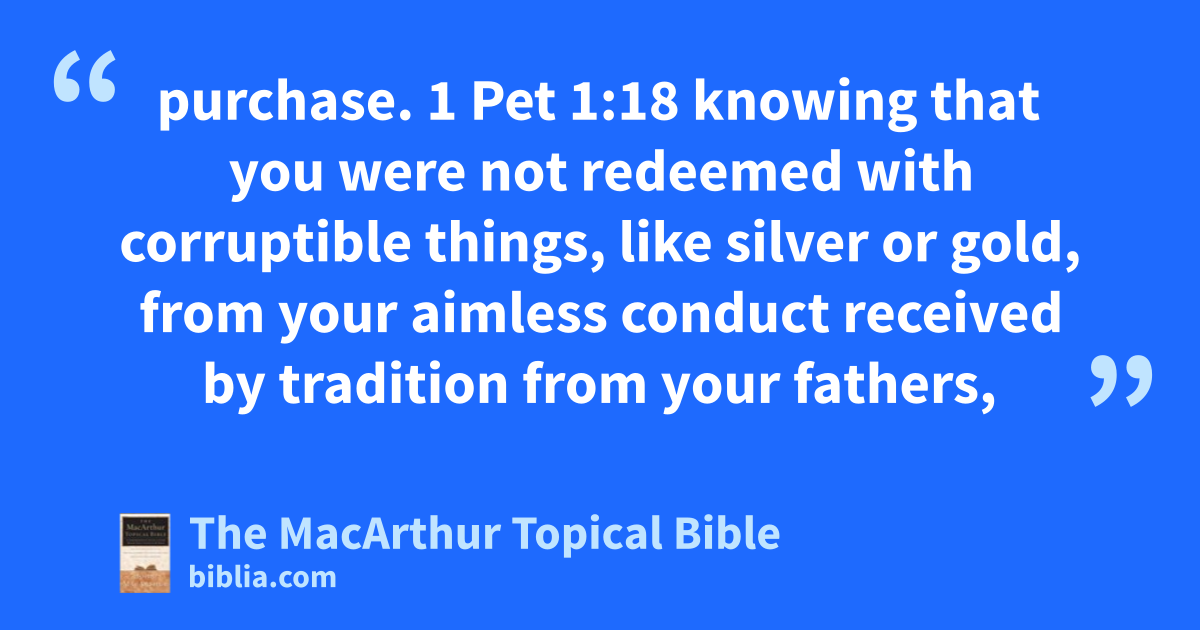 purchase. 1 Pet 1:18 knowing that you were not redeemed with corruptible things, like silver or gold, from your aimless conduct received by tradition from your fathers,