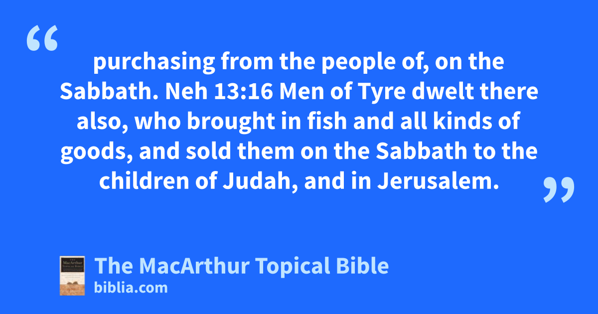purchasing from the people of, on the Sabbath. Neh 13:16 Men of Tyre dwelt there also, who brought in fish and all kinds of goods, and sold them on the Sabbath to the children of Judah, and in Jerusalem.