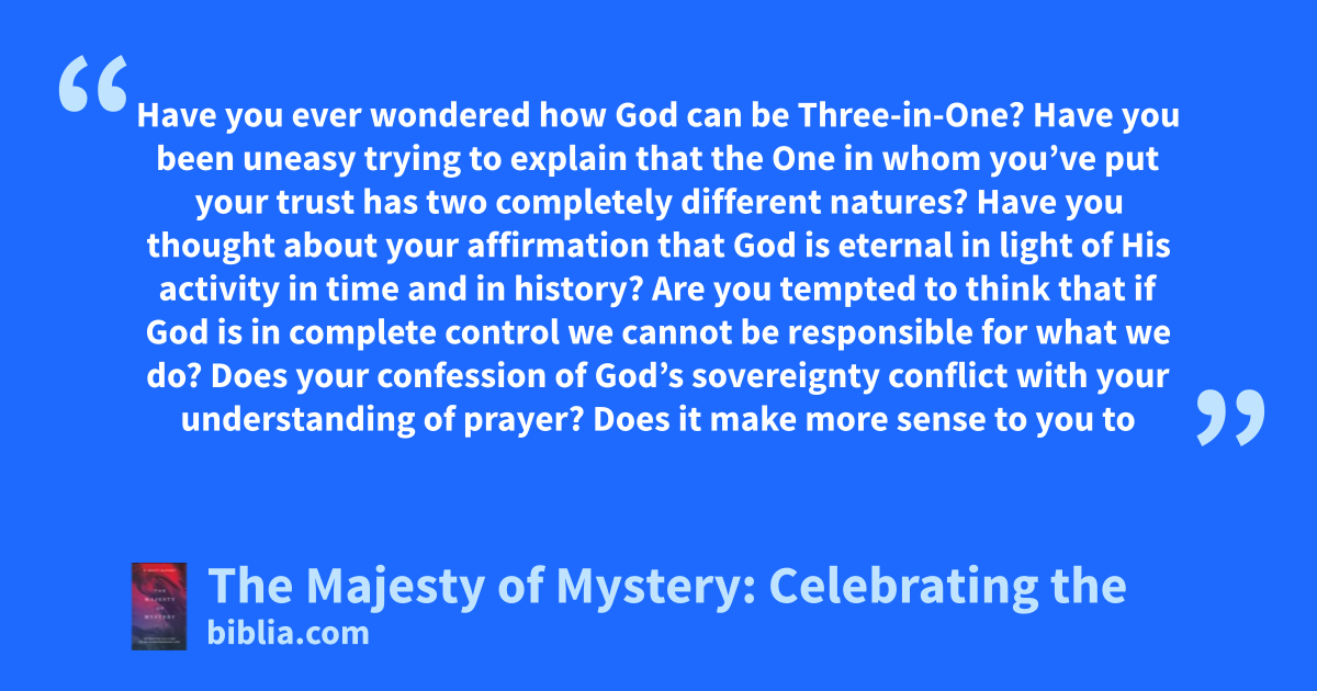Have you ever wondered how God can be Three-in-One? Have you been uneasy trying to explain that the One in whom you’ve put your trust has two completely different natures? Have you thought about your affirmation that God is eternal in light of His activity in time and in history? Are you tempted to think that if God is in complete control we cannot be responsible for what we do? Does your confession of God’s sovereignty conflict with your understanding of prayer? Does it make more sense to you to