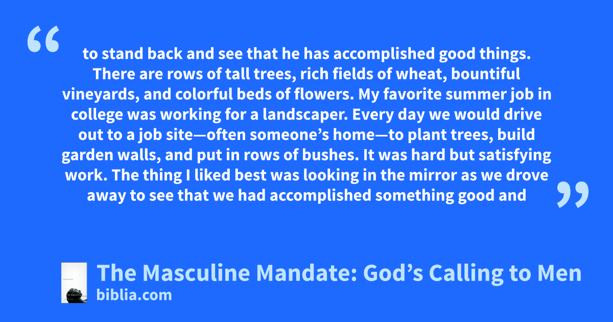 to stand back and see that he has accomplished good things. There are rows of tall trees, rich fields of wheat, bountiful vineyards, and colorful beds of flowers. My favorite summer job in college was working for a landscaper. Every day we would drive out to a job site—often someone’s home—to plant trees, build garden walls, and put in rows of bushes. It was hard but satisfying work. The thing I liked best was looking in the mirror as we drove away to see that we had accomplished something good and