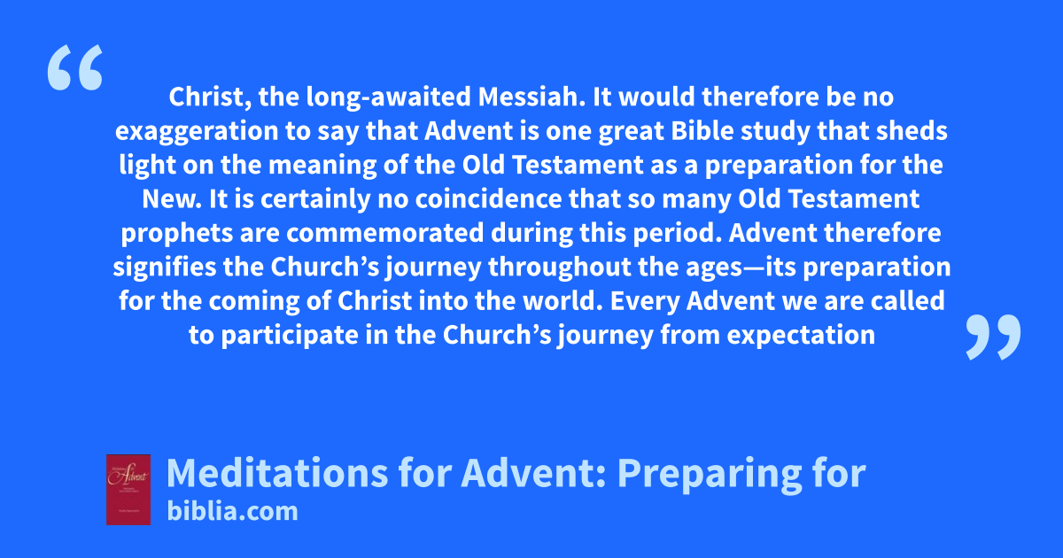 Christ, the long-awaited Messiah. It would therefore be no exaggeration to say that Advent is one great Bible study that sheds light on the meaning of the Old Testament as a preparation for the New. It is certainly no coincidence that so many Old Testament prophets are commemorated during this period. Advent therefore signifies the Church’s journey throughout the ages—its preparation for the coming of Christ into the world. Every Advent we are called to participate in the Church’s journey from expectation