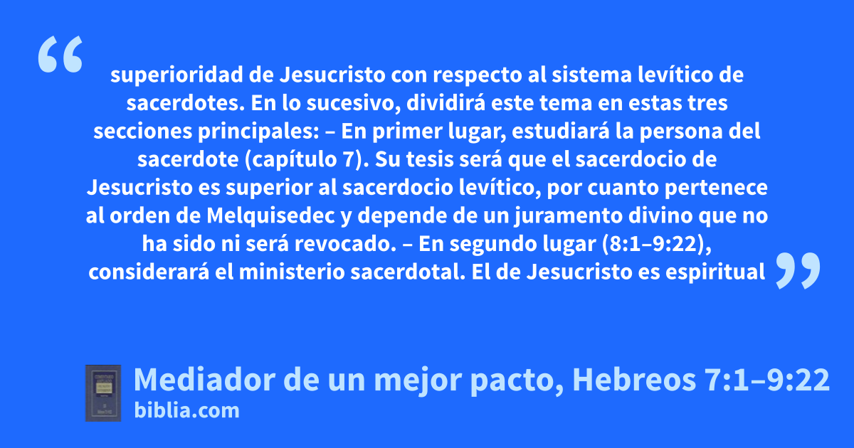 Mediador de un mejor pacto, Hebreos 7:1–9:22 is unavailable, but you can change that!