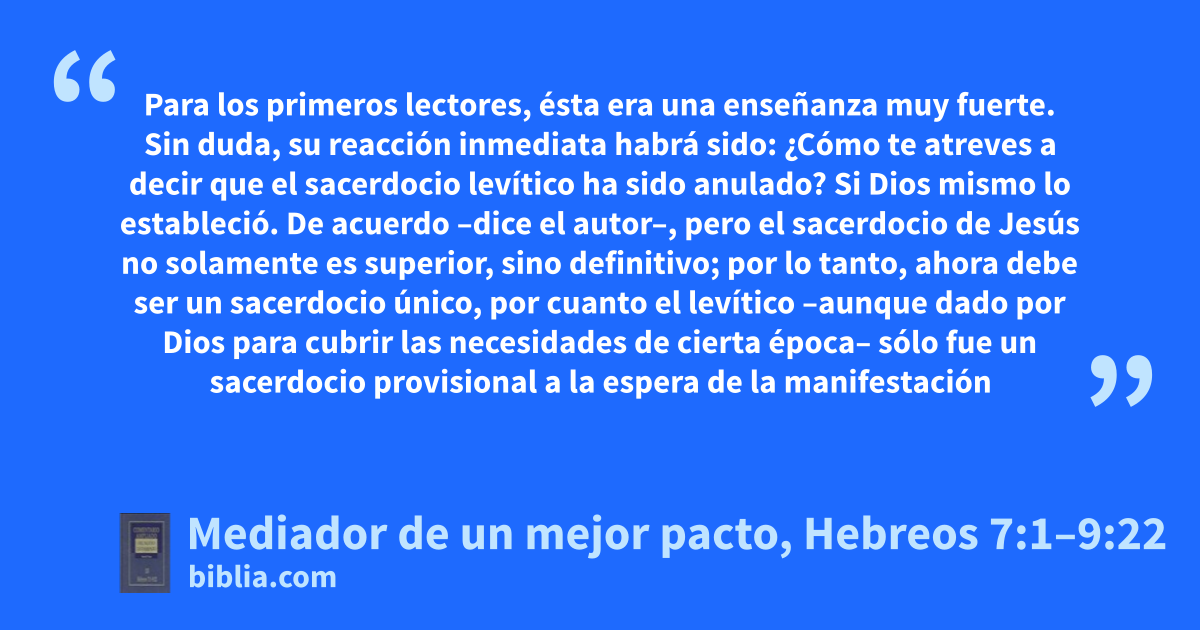 Mediador de un mejor pacto, Hebreos 7:1–9:22 is unavailable, but you can change that!